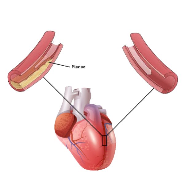 Our heart constantly needs blood in order to function and supply nutrients for the rest of our body.The arteries that give blood to the heart are called the coronary arteries.When the arteries narrow or become completely blocked, the blood flow is disrupted, resulting in a heart attack. The narrowing happens when a plaque, which is made of cholesterol, white blood cells, and other fatty deposits, build up in the coronary arteries. The damage happens in two stages:
